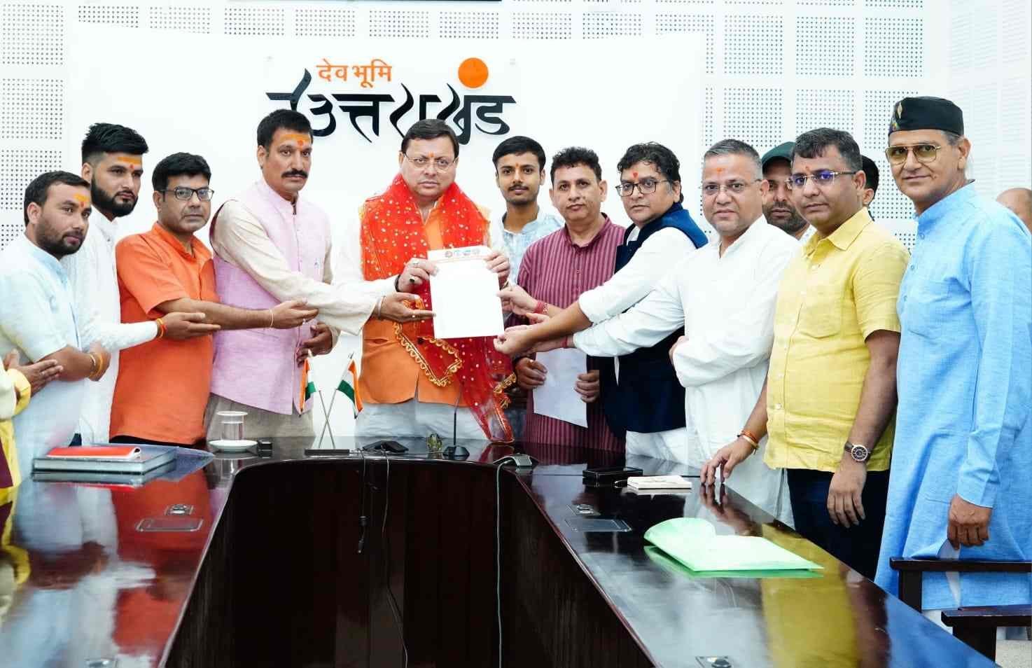 मुख्यमंत्री से उत्तराखण्ड तीर्थ पुरोहित महापंचायत के पदाधिकारियों ने की भेंट, सीएम धामी का जताया आभार