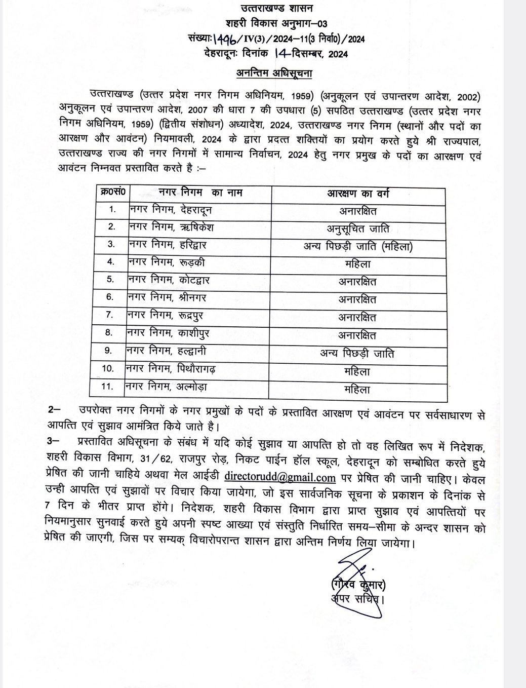 उत्तराखंड नगर निकायों में आरक्षण की अनंतिम अधिसूचना जारी; ऋषिकेश नगर निगम एससी तो हरिद्वार में महिला OBC, देखिए पूरी सूची..