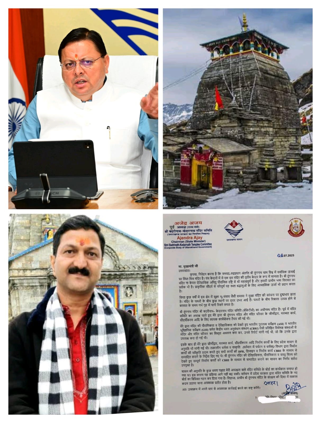 अजेंद्र अजय बोले—‘भूधंसाव और वर्षाजल से कमजोर हो रही मंदिर की संरचना, तुंगनाथ की सुरक्षा में देरी नहीं सहन’