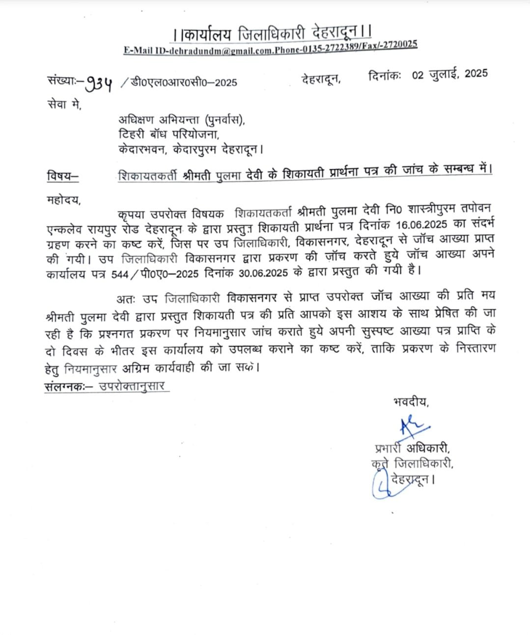 अधीक्षण अभियंता (टिहरी बांध पुर्नवास) का वाहन जब्त; विवरण सहित प्रस्तुत होने के निर्देश; सम्बन्धित को एसआईटी जांच में संस्तुति की चेतावनी: डीएम