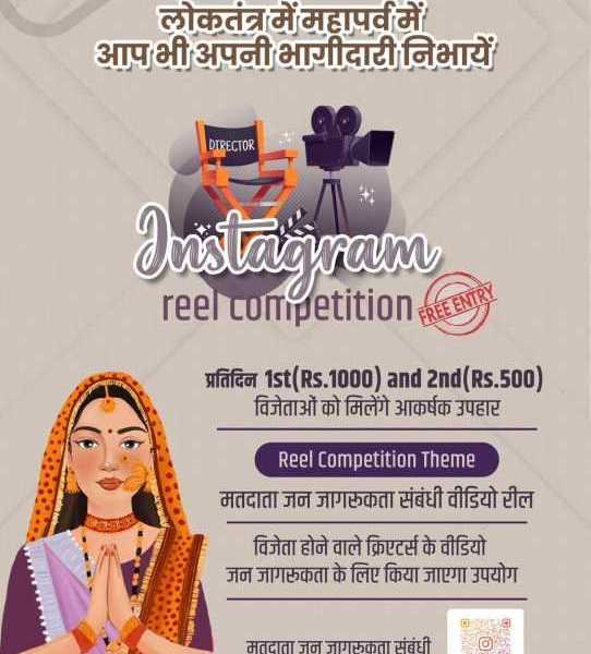 मुख्य निर्वाचन अधिकारी कार्यालय ने युवाओं को चुनाव से जोड़ने के लिए इंस्टाग्राम पर अभियान शुरू किया है। इसके तहत मतदान जागरूकता संबंधी रील बनाकर सीईओ को टैग करने वालों को चुनाव आयोग की ओर से 500 से 1000 रुपये पुरस्कार दिया जाएगा।