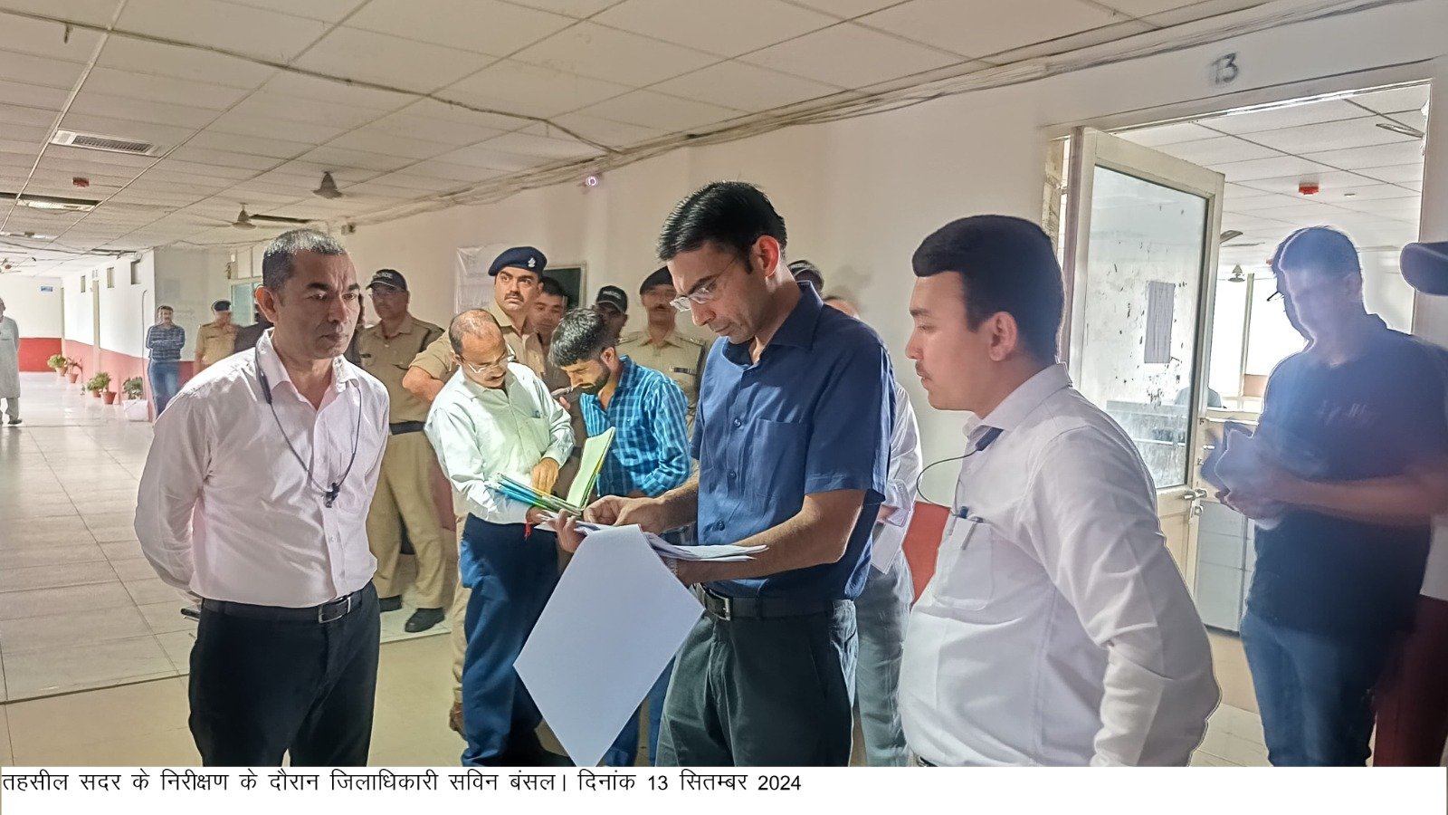 जिलाधिकारी सविन बसंल ने तहसील सदर का किया औचक निरीक्षण। जिलाधिकारी आज सुबह वर्षा के बीच प्रातः 9ः50 बजे तहसील सदर पंहुचे। जिलाधिकारी ने उपस्थिति पंजिका का निरीक्षण करते हुए देरी से आने वाले कार्मिकों जारी की चेतावनी, 10ः30 बजे बाद आने वाले कार्मिकों का 01 दिन के वेतन रोकने के दिए निर्देश। सुस्त कार्य प्रणाली पर डब्लू.बी.एन, ए.डब्लू.बी.एन के तबादले को किया आदेशित।