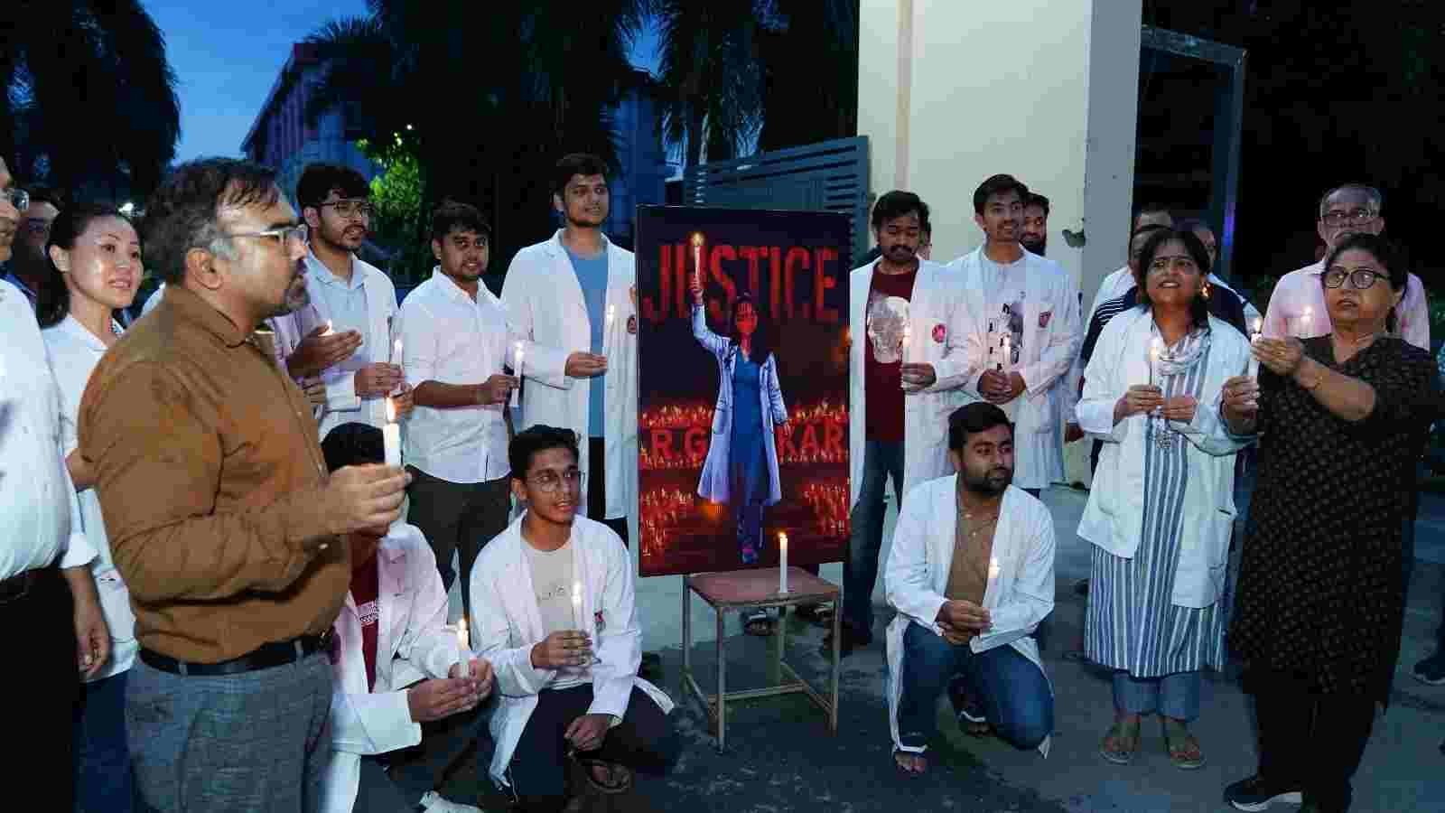 देहरादून। कोलकाता में महिला डाॅक्टर के साथ हुए दुष्कर्म और जघन्य हत्या के विरोध में श्री महंत इन्दिरेश अस्पताल के डाॅक्टरों ने विरोध जताया। उन्होंने शनिवार को विरोध स्वरूप काली पट्टी बांधकर प्रदर्शन किया। प्रदर्शन में शामिल डाॅक्टरों ने एक सुर में कहा कि कोलकाता में हुआ घटनाक्रम एक हृदयविदारक घटना है। विरोध प्रर्दशन में शामिल डाॅक्टरों ने दोषियों के विरूद्ध कड़ी से कड़ी कानूनी कार्रवाई की मांग की। देर शाम डाॅक्टरों ने कैंडिल मार्च निकालकर दिवंगत आत्मा के प्रति गहरी संवेदनाएं व्यक्त कीं।