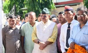 देहरादून के राजपुर कंडोली निवासी हवलदार मनीष थापा के निधन पर श्रद्धांजलि देते सैनिक कल्याण मंत्री गणेश जोशी