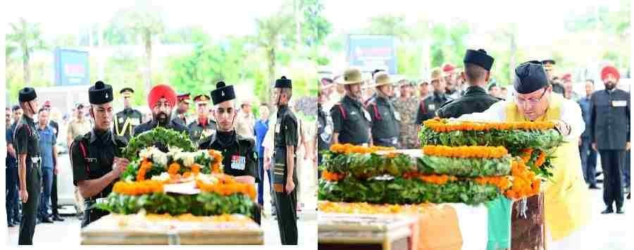 जम्मू कश्मीर में शहीद हुए कैप्टन दीपक सिंह के पार्थिव शरीर पर राज्यपाल एवं मुख्यमंत्री धामी ने किये पुष्पचक्र अर्पित