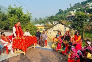 केदारनाथ विधानसभा के सौडी गांव में उपचुनाव भाजपा प्रत्याशी के समर्थन में आयोजित सूक्ष्म सभा में पूर्व सैनिकों के साथ चुनावी चर्चा करते सैनिक कल्याण मंत्री गणेश जोशी।